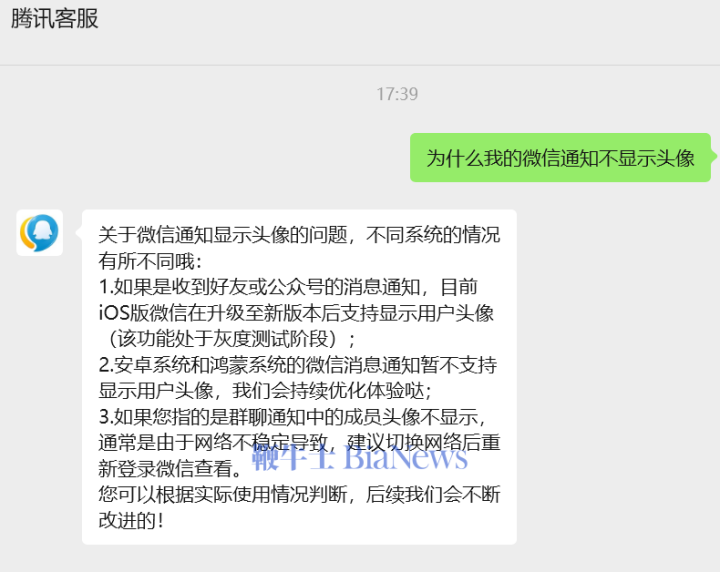 有部分用户表示,他们的微信通知可以显示头像了。但也有部分用户称并没有这个功能。