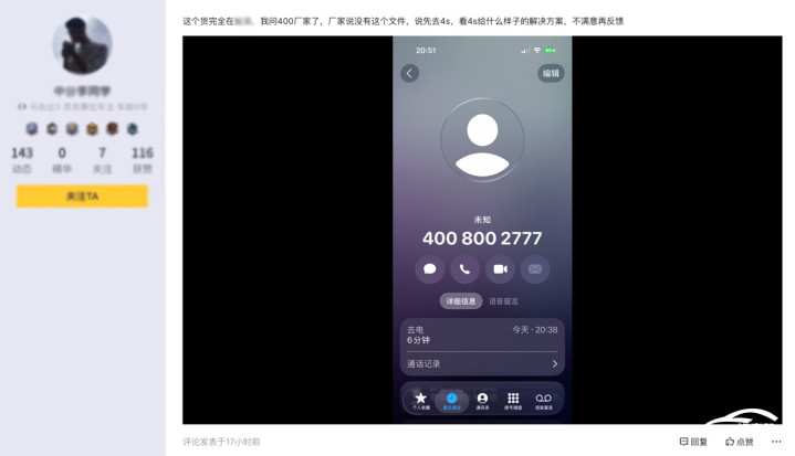 一位网友回复称,小道消息不是官方公告,并不可信。另一位网友拨打厂家服务热线询问。厂家称没有此文件,其建议车主先去4S店解决问题,若车主不满意再反馈。