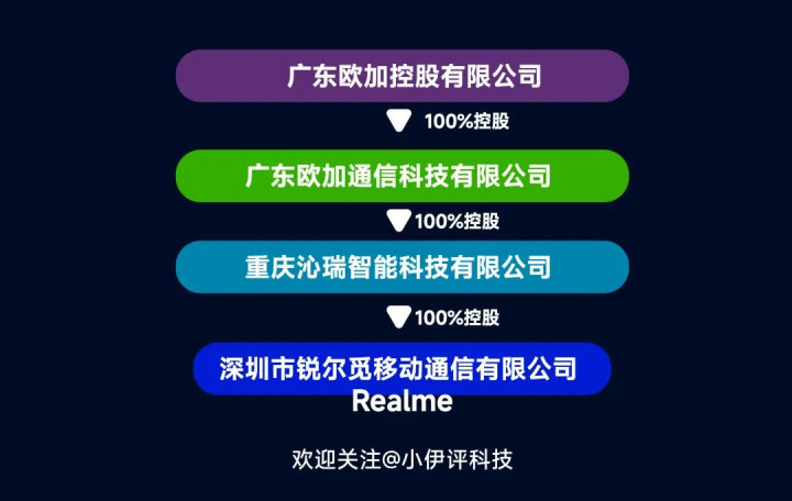 欧加集团就是通过多层控股的模式,100%控股了真我Realme的公司——深圳市锐尔觅移动通信有限公司。