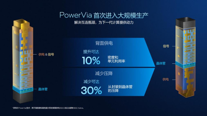 据公开资料显示,全新酷睿Ultra处理器最大的底气来自 Intel 18A制程工艺 —— 作为英特尔目前最先进的半导体工艺,它靠两项黑科技实现突破:RibbonFET全环绕栅极晶体管用4条垂直纳米带环抱电流通道,既提升开关速度又抑制漏电;PowerVia背部供电则把供电电路移到晶圆背面,让芯片密度提 30%、压降减少30%。这直接带来了“同性能下功耗降25%、同功耗下每瓦性能提15%”的提升,为长续航打下基础。