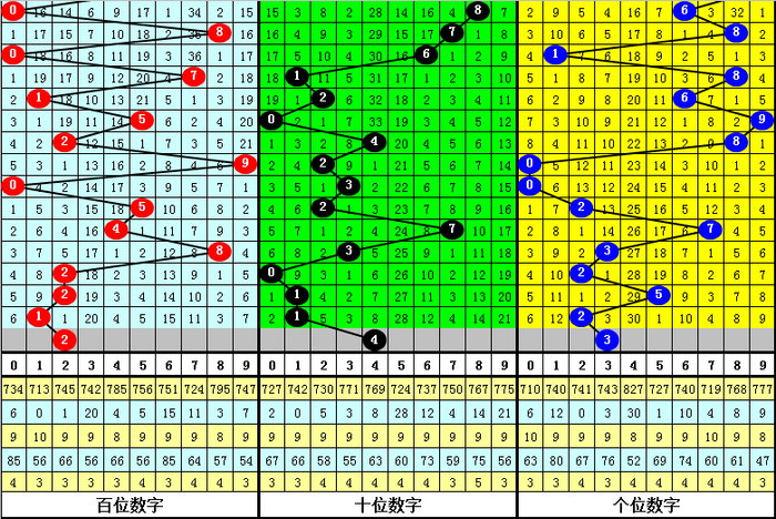 和值分析:在第018期历史同期开奖中,奖号和值共开出14个,和值波动区间在3-22之间,分布范围相对较广,其中0-9区段和值开出4次,在10-17区段出现12,在18-27区段开出6次,本期预计和值走小,出现在0-9区段。