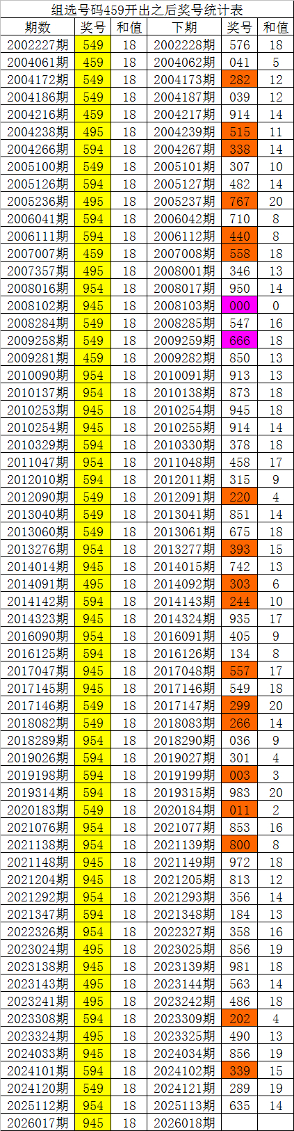福彩3D第2026017期开出组选号码:459,该号码历史上组选出现了63次,其下期分别开出了号码:576、041、282、039、914、515、338、307、482、767、710、440、558、346、950、000、547、666、850、913、873、945、914、378、458、315、220、851、675、393、742、303、244、935、405、134、557、549、299、266、036、301、003、983、011、853、800、972、813、356、184、358、856、981、563、486、202、490、856、339、289、635,如图:
