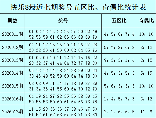 福彩快乐8第2026017期开奖回顾:11 15 28 33 36 37 38 46 47 50 51 52 61 62 63 67 68 71 73 80,其中奖号五区比为2:1:6:6:5,奇偶比为11:9,012路比为5:7:8。